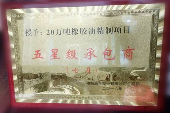 近日,在中海瀝青股份有限公司組織評(píng)選的“優(yōu)秀承包商”活動(dòng)中,南京機(jī)械廠20萬噸/年橡膠油技改項(xiàng)目部榮獲“五星級(jí)承包商”稱號(hào)。