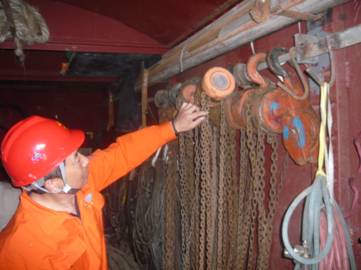 此次檢查,主要是針對(duì)目前鋼結(jié)構(gòu)制作和安裝過程中,施工使用的50噸履帶吊車的安全性能。檢查內(nèi)容包括:吊車的限位器、操作性能、報(bào)警裝置、掛鉤、鋼絲繩等關(guān)鍵部位。同時(shí),檢查小組對(duì)非標(biāo)隊(duì)已入庫的手拉倒鏈也逐一進(jìn)行了檢查,并要求勞務(wù)隊(duì)長加強(qiáng)對(duì)入庫的起重機(jī)具的管理,確保安全使用性能。