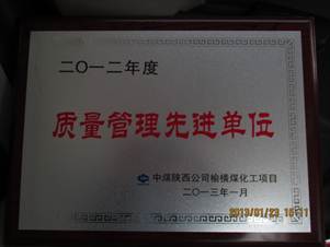 南京工程公司承建的中煤榆橫凈化裝置變換及熱回收工程,自2012年3月開工以來,一直嚴(yán)格按照公司及業(yè)主的高標(biāo)準(zhǔn)來組織施工,精細(xì)管理,服務(wù)服從項(xiàng)目安排,項(xiàng)目管理各項(xiàng)工作取得了突出成就,先后得到業(yè)主頒發(fā)的樣板工程、創(chuàng)優(yōu)流動(dòng)獎(jiǎng),五環(huán)總包也對我方的工作給予高度評價(jià)。不僅如此,在中煤陜西公司2013年1月23日上午8:30召開的2012年度項(xiàng)目工作總結(jié)大會上,公司又榮獲了“質(zhì)量管理先進(jìn)單位”稱號。