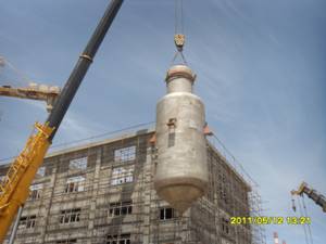 第一工程公司陜西渭河彬州化工項(xiàng)目?jī)羲竟こ淌伊蟼}(cāng)成功吊裝